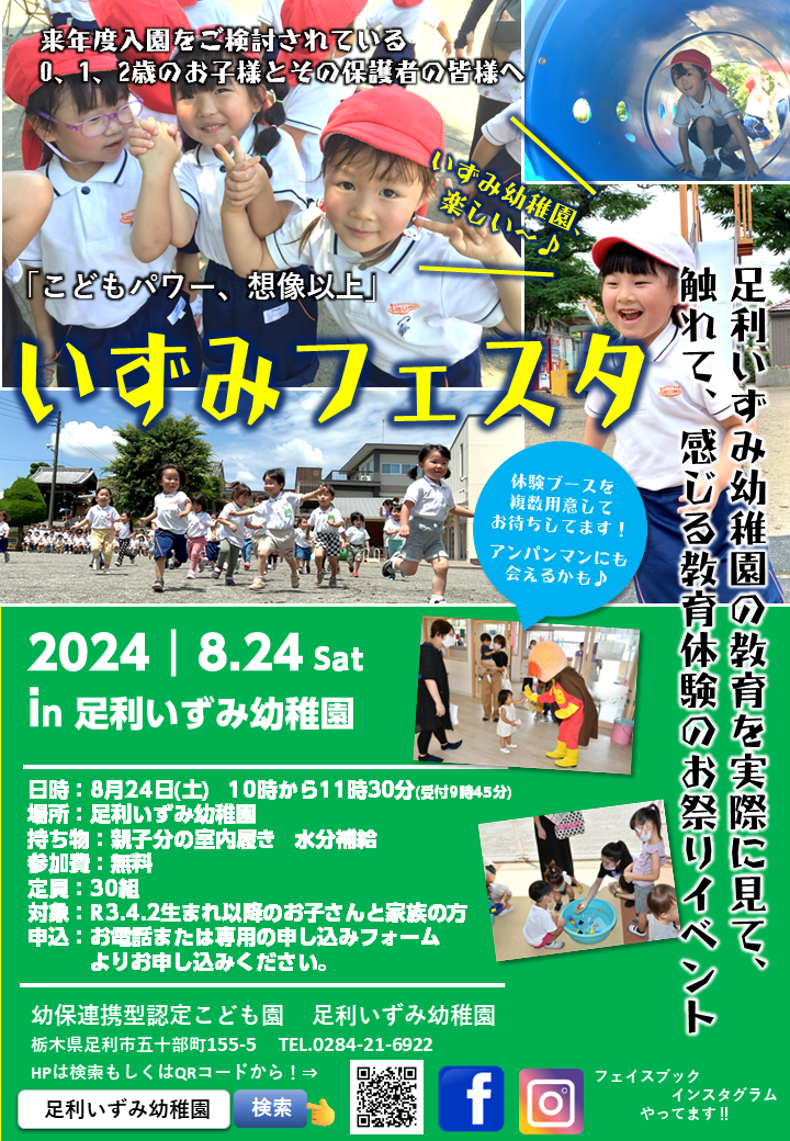 足利いずみ幼稚園への入園をご検討の皆様はぜひこの機会にお越しください。